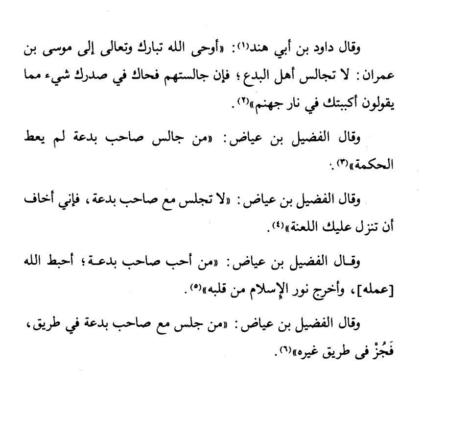 Fudail bin Iyad said; Any one keeps a company of innovator, will not be given wisdom. Don’t keep the company of innovators, because I think if you do, you will be cursed (by God)!