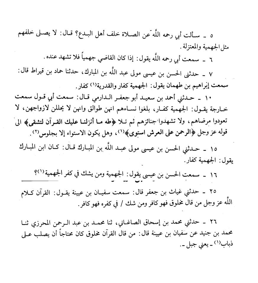 Ibn Mubarak said; Jahmites are kuffar! Hasan bin Isa said; Jahmites are kuffar and the ones who are not sure that Jahmites kuffar are kuffar too!